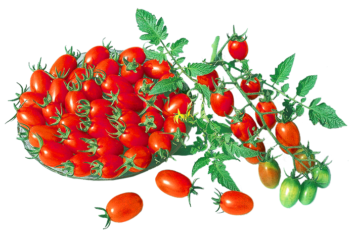 紅色長橢圓形,無限生長型,單果約25克, 收成期長,糖度約8-9°Brix。非停心型。